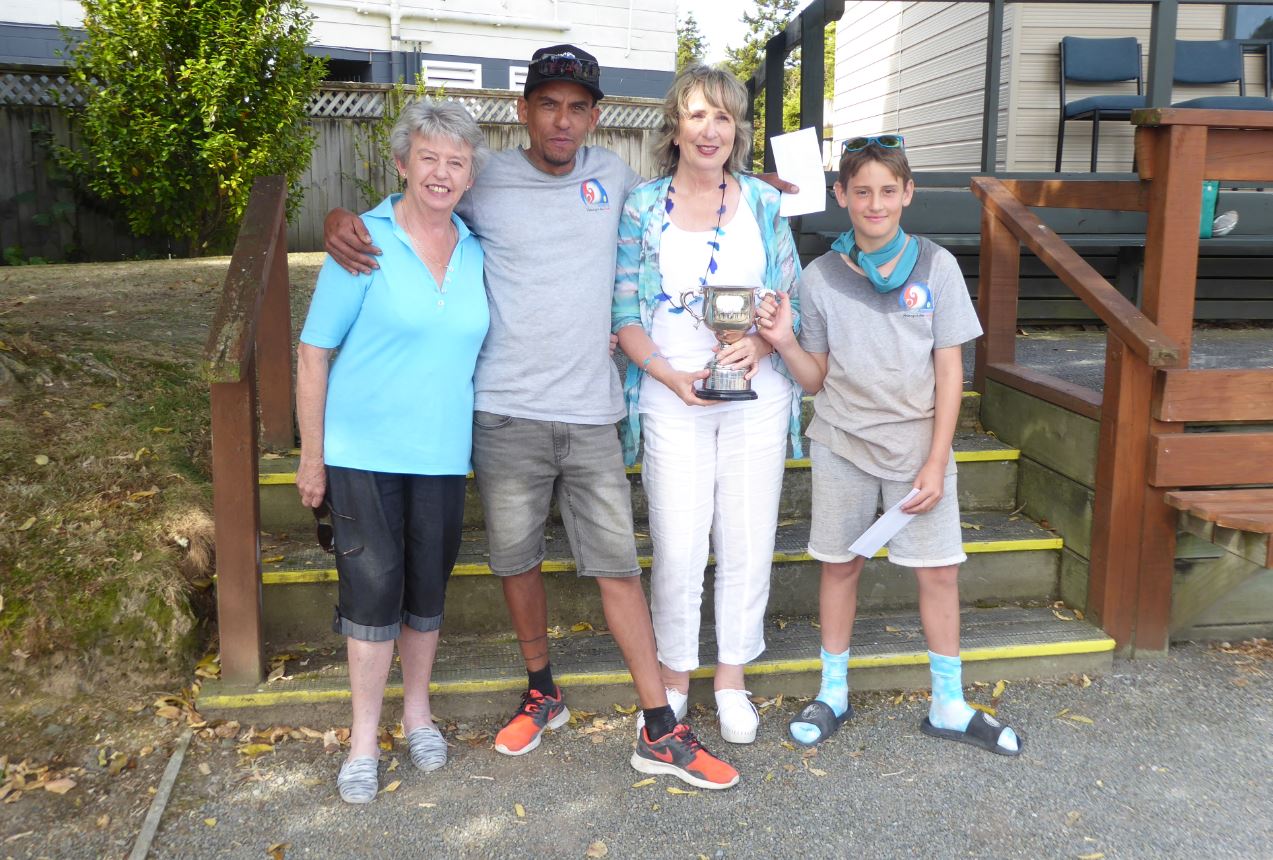 Special mention must be made for members of the Rotorua Youth Academy. The three representing the youth held their own magnificently, with Kelan Noel, playing with his dad Andre, taking out the Trophy. Liz Koh, who is Kāpiti Petanque club’s patron, spent some time watching the brilliant finals, before presenting the Trophy and other awards. The eventual winners were: